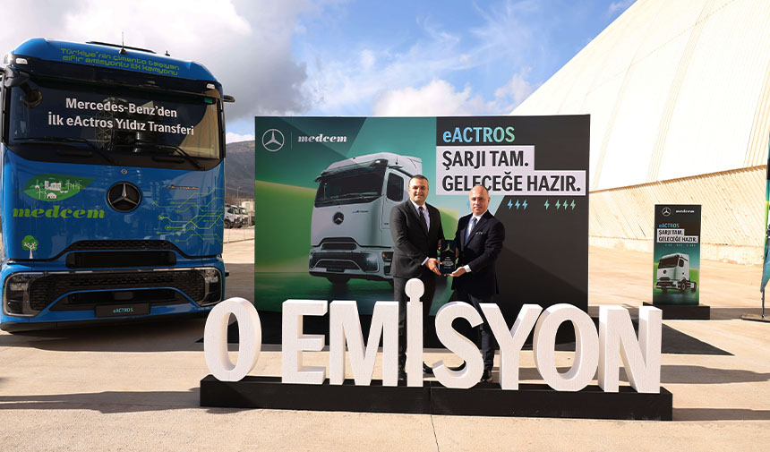 Mercedes-Benz Türk, batarya elektrikli çekici modeli Mercedes-Benz eActros 600’ün Türkiye’deki ilk teslimatını Medcem Çimento’ya gerçekleştirdi. Teslimat töreni, Medcem Çimento’nun Mersin Silifke’de bulunan üretim tesisinde düzenlendi.